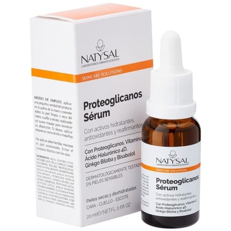 Proteoglycans Serum 20ml with Vitamin C, Hyaluronic Acid, Ginkgo Biloba, and Bisabolol for Dry and Dehydrated Skin - Made in Spain