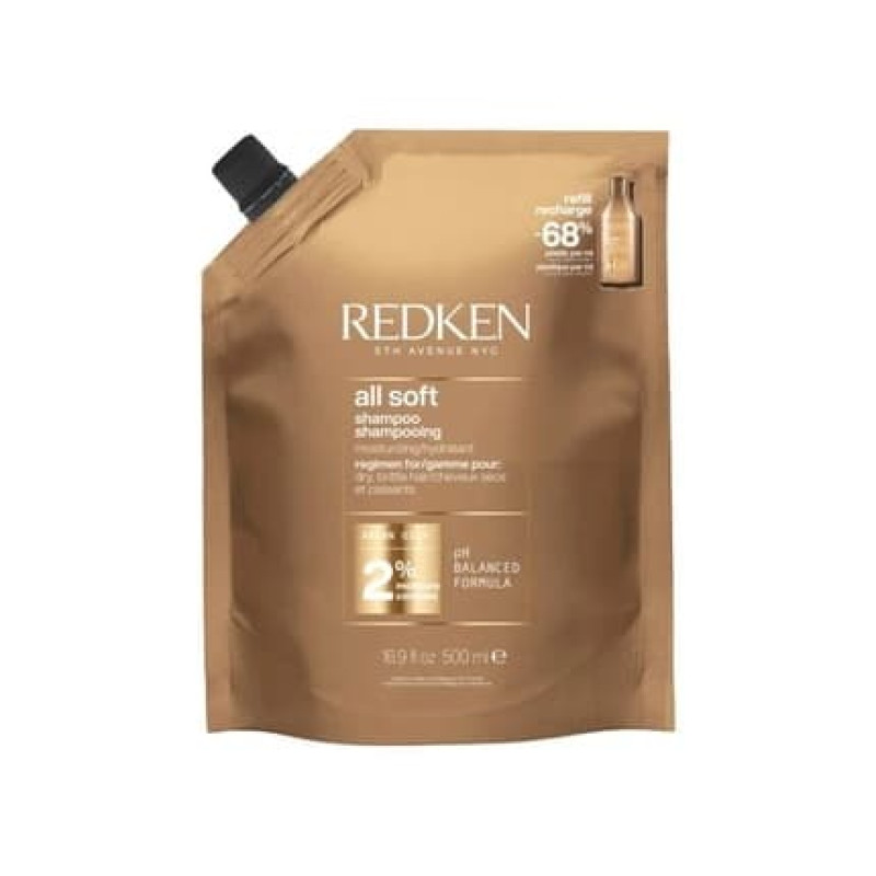 Redken All Soft Shampoo Refill Pouch 500ml Nourishing Hair Care