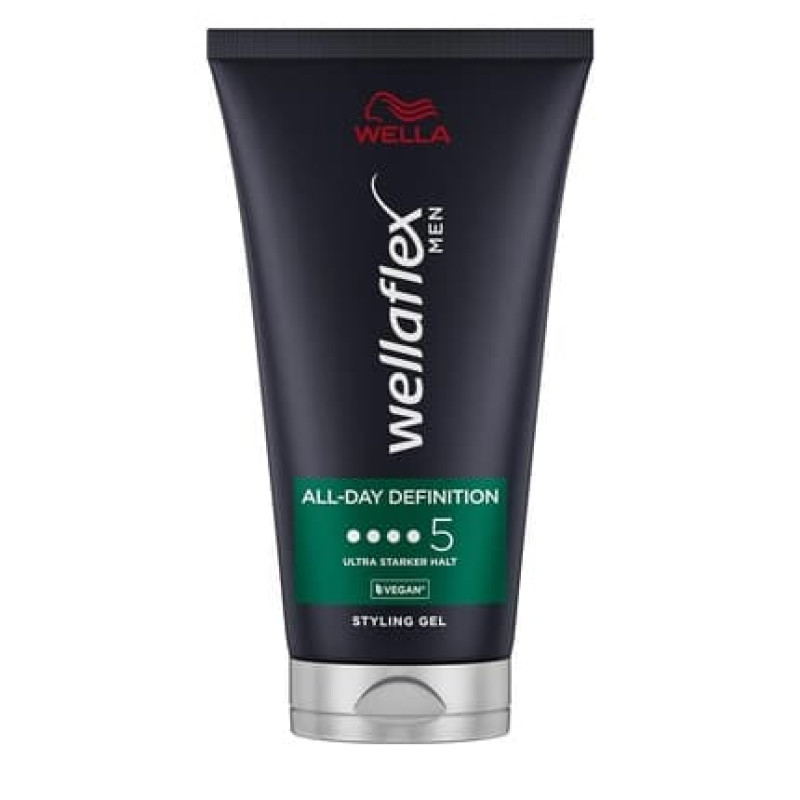 Wellaflex Men All-Day Definition Gel Ultra Strong Hold Styling Hair Gel Vegan Dermatologically Tested Silicone-Free 150ml
